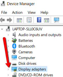 - Aşağı kaydır Ekran adaptörleriBu bölümü yanındaki oka tıklayarak genişletin.