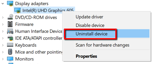 - Orada, ekran kartınızı seçin. Üzerine sağ tıklayın ve seçin. Cihazı kaldır.