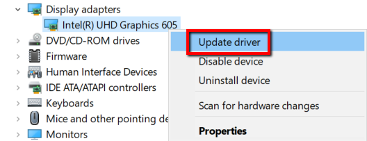 Genişletin. Ekran bağdaştırıcınızı bulun ve üzerine sağ tıklayın. Şimdi, seçin.